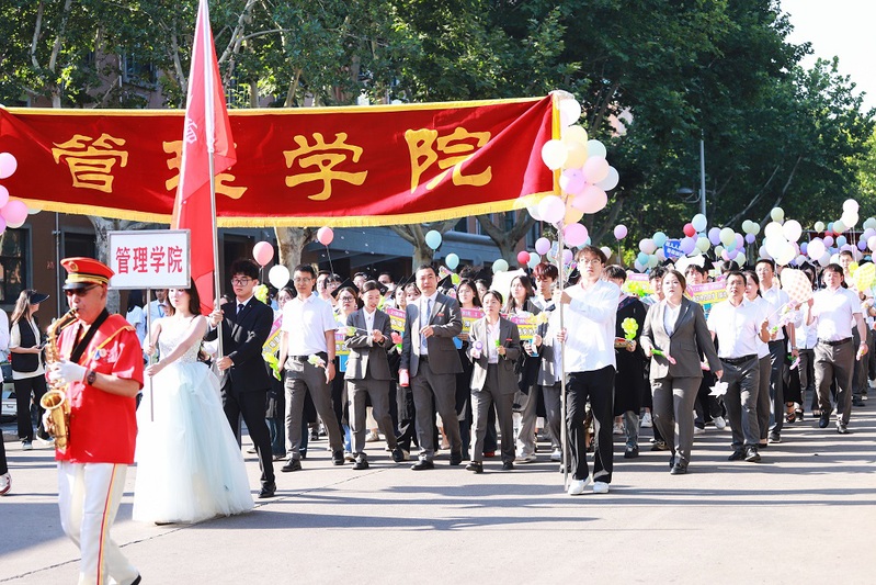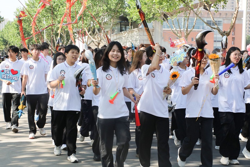 6月6日上午,校园内鼓乐铿锵,独具郑商特色的毕业巡礼活动在军乐团欢快激昂的鼓点中拉开帷幕。王育华董事长、陈坚德执行董事、吴建军书记、吴泽强校长、陈宗纬助理、裴晓涛副书记、张江涛副校长、刘升阳副校长、泥川助理和各部门主管、副主管、教师代表手持祝福板,为即将踏上新征程的毕业生们加油鼓劲;在校生代表组成的“祝福方阵”有秩序地分列在巡礼路线两侧,挥舞着写有“学长学姐,未来可期”的手卡,沿途鲜花夹道、掌声如潮,形成一条充满爱心的“毕业祝福长廊”。