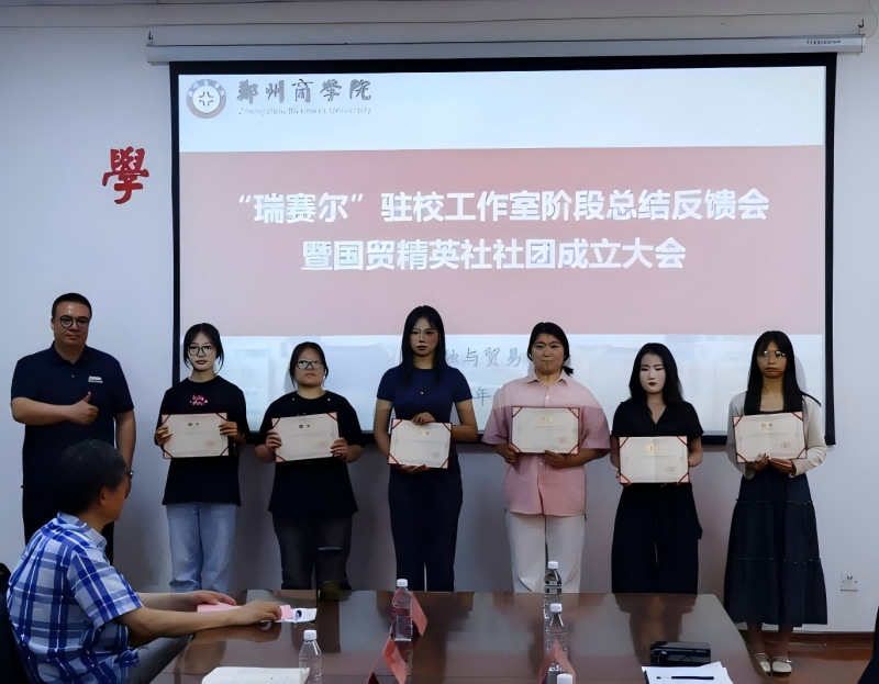 河南瑞赛尔机械制造有限公司总经理李良辉为引企入校项目重要载体—国贸精英社学生干部颁发了聘书。