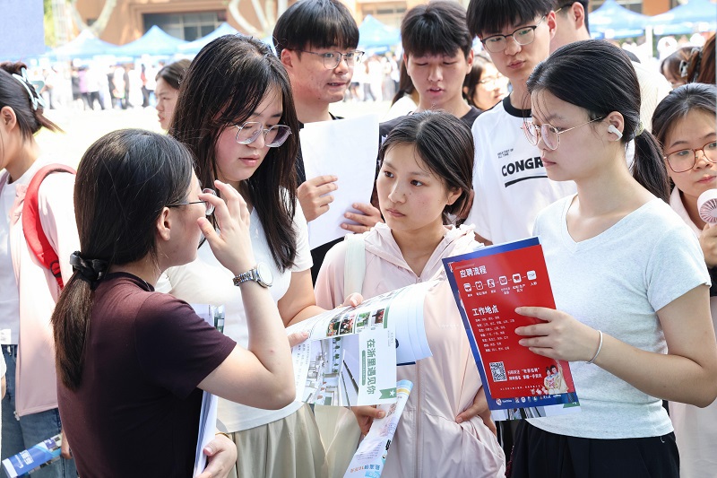 双选会现场人头攒动,气氛热烈。毕业生们手持简历,穿梭在各展位间,积极与企业招聘人员交流,了解企业文化、岗位要求和薪酬待遇。企业招聘人员热情介绍企业发展与前景,并耐心解答毕业生关心的各类问题。