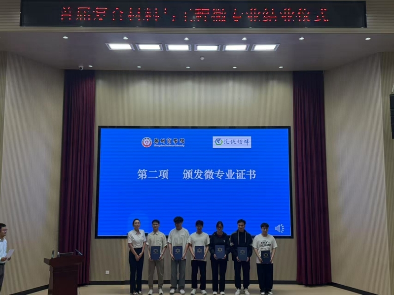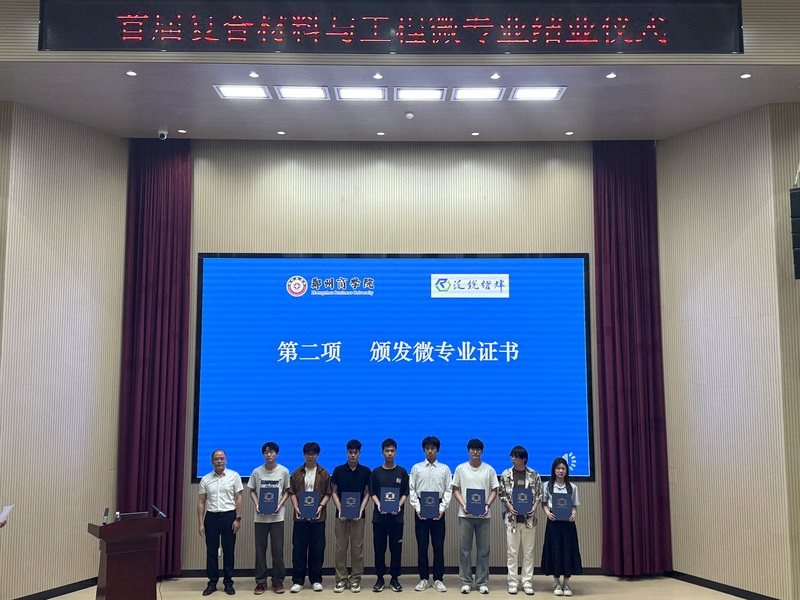6月17日,首届校企共建复合材料与工程微专业结业仪式在躬行楼报告厅隆重举行。巩义市泛锐熠辉复合材料股份有限公司副总经理赵严博士作为校企共建单位代表受邀出席,beat365副校长刘升阳,管理学院院长李晓翠,金贸学院院长梁鹏,机电学院院长张晓冬、党委书记杨茗涵、副院长李深磊等领导,以及各学院教师代表,与第一届、第二届复合材料与工程微专业的学生们齐聚一堂,共同见证这一具有里程碑意义的时刻。