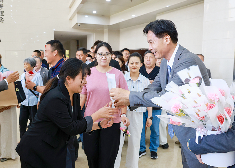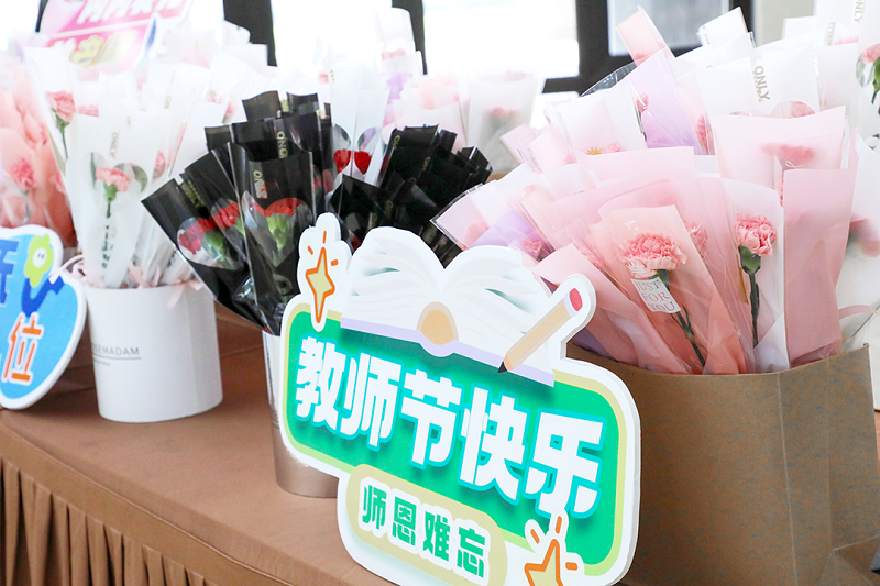 9月9日,在全校教职工大会现场,董事长王育华带领全体校领导亲手为每一位教职工送上象征敬意与祝福的康乃馨,以温馨的方式传递学校对教职工的关怀。