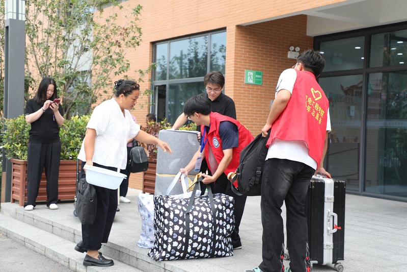 面对新生与家长的期待,各学院新生辅导员和助理辅导员全程在线,始终耐心、热情地解答着每一位学生与家长的问题。宿舍楼下,会计学院辅导员付高原始终忙碌着,从校园环境、设施建设,到专业课程设置与未来发展,他一一向家长介绍,用行动诠释着“让家长放心,让学生安心。”报到期间,阴雨连绵,学校始终牵挂着新生的出行安全,通过多种渠道发布天气预警和安全提示,并做好学生提前或延后报到的准备,管理学院辅导员谢佳音说:“学校暑期就提前组建了新生群,多次讲解入学报到注意事项及所需携带的材料,精准统计每位学生的预计到校时间,为后续高铁、火车接站服务做好了充分准备。报到期间所有迎新服务将风雨无阻地持续运行,确保每一位新生都能顺利安全到校。”
