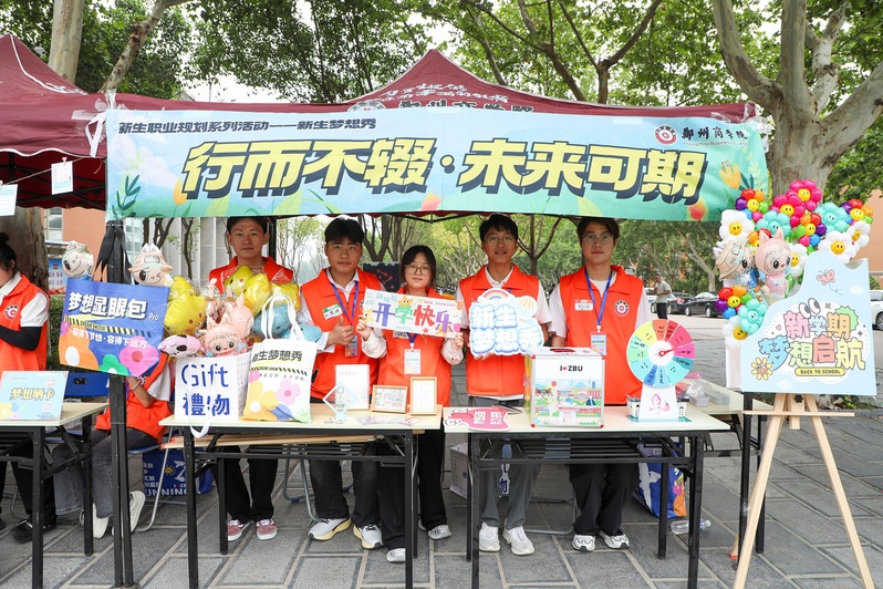 今年的迎新,不仅是报到,更是一场充满创意的体验展。学校匠心打造了涵盖笔记本、帆布包、便利贴、鼠标垫等六大品类的定制文创产品,这份精美的“见面礼”寄托了对学子们的美好祝愿。校园记者站还为新生和家长提供官方拍摄,新生和家人在校园记者的引导下,在创新打卡墙处面对专业相机露出灿烂的笑容,留下在郑商的第一张全家福。校团委将迎新服务点变身成一座青春洋溢的“露天音乐站”,用歌声与旋律为新生献上第一声问候,成为许多新生相识、融入校园的“独特一站”。园主干道旁,别致的“新生梦想秀”帐篷吸引了众多新生驻足,新生们通过体验“梦想加油”“悦启职程”“生涯棋遇”“见证梦想”四大环节,谋划大学生活、锚定职业目标,搭建起专业认知与职业探索的桥梁。会计学院新生李雨婷在“梦想卡”上写下了对大学生活的美好期许,“把梦想卡投递到梦想加油站时,我开始对未来四年怎么过有了思考,后来在玩游戏、画笑脸中,逐渐有了自我认知,对生涯教育有了初步概念。”