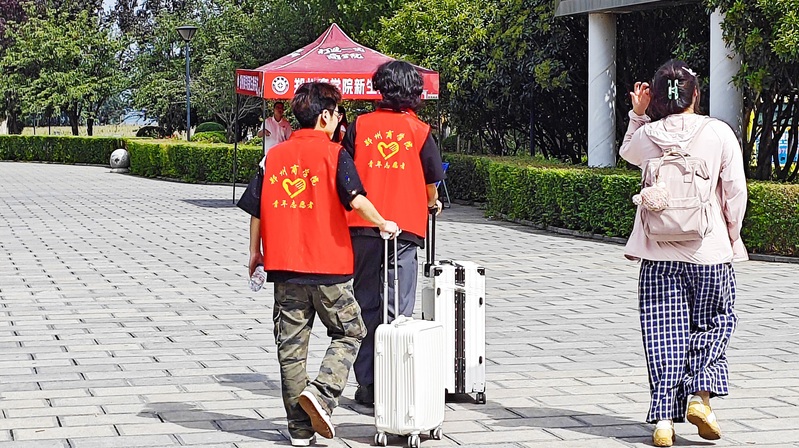 志愿者依旧是迎新现场最亮眼的风景线。千余名身着定制“郑商红”马甲的志愿者,活跃在校门、交通枢纽、宿舍楼、摆渡车,提供热情周到的引导、答疑和行李搬运服务。