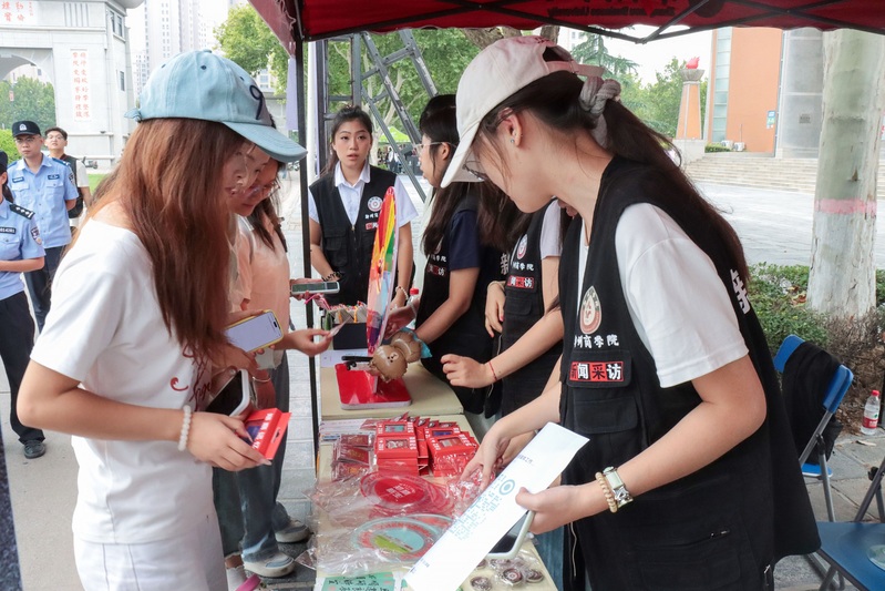 校园内增设有校领导咨询台、医疗保障服务站、防电信诈骗、绿色通道办理处、征兵咨询处、家长休息区、活动互动打卡区、文艺表演等帐篷点,让新生及家长入校即可问询、办事、互动,体验感拉满。在征兵咨询处前,文传学院新生郭兰婷主动了解了大学生入伍的条件和标准,聊起对参军的期待,她语气格外坚定:“我一直向往军旅生活,渴望有一天能穿上军装,磨练意志、锻炼自我。”