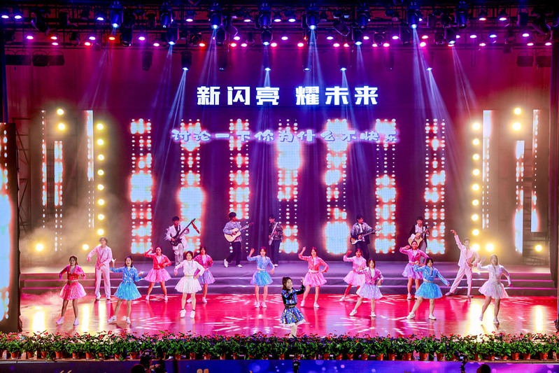 晚会以“新闪亮·耀未来”为主题,分为“新启航”“星璀璨”“耀未来”三个部分,通过舞蹈、讲述、歌曲等不同的表演形式,淋漓尽致地诠释了青春的无限可能,赢得了台下如潮的欢呼与掌声。