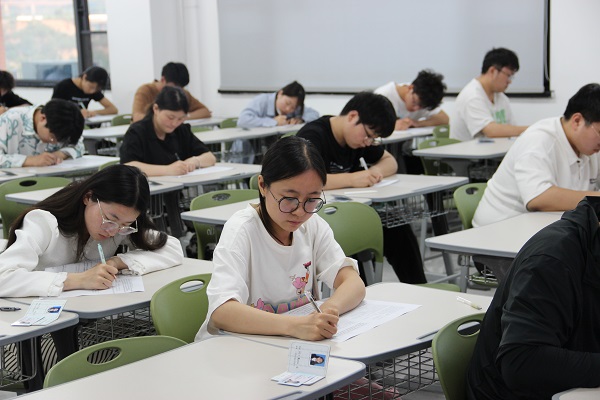 此次考试采用闭卷的形式,重点考察党员发展对象对于习近平新时代中国特色社会主义思想、党的二十大精神、中国共产党党史、《中国共产党章程》以及党纪学习教育等党的基本理论知识的掌握情况,题型包含选择题、填空题、简答题等。开考前,监考老师强调了考试纪律和注意事项,要求考生严守纪律、诚信考试,全程自觉、独立完成答题。考试期间,监考教师认真巡视考场,确保考试公平公正,考生态度严肃认真,沉着冷静答题,考试全程秩序井然,充分展现了beat365学子良好的考试风气。