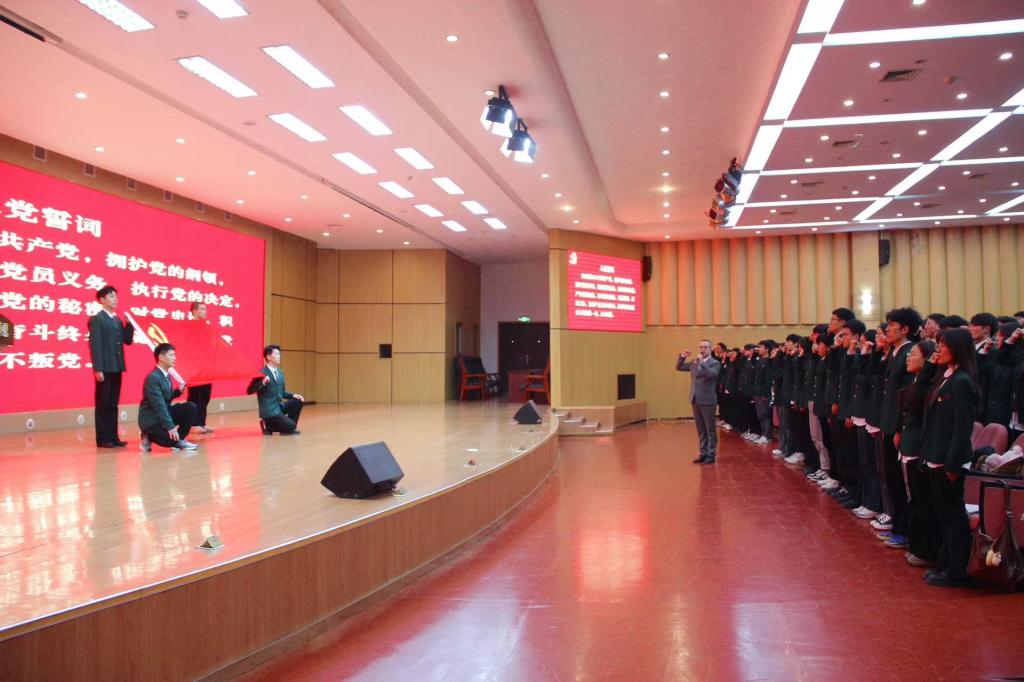 伴随着雄壮的国歌声,全体人员起立,向国旗行注目礼,仪式正式开始。党委组织部副部长孟晗宣读了《中共beat365唯一官网委员会关于接收预备党员的批复》,正式确认新党员的身份和资格,全体预备党员庄严宣誓,艺术学院党委书记李帅领誓。
