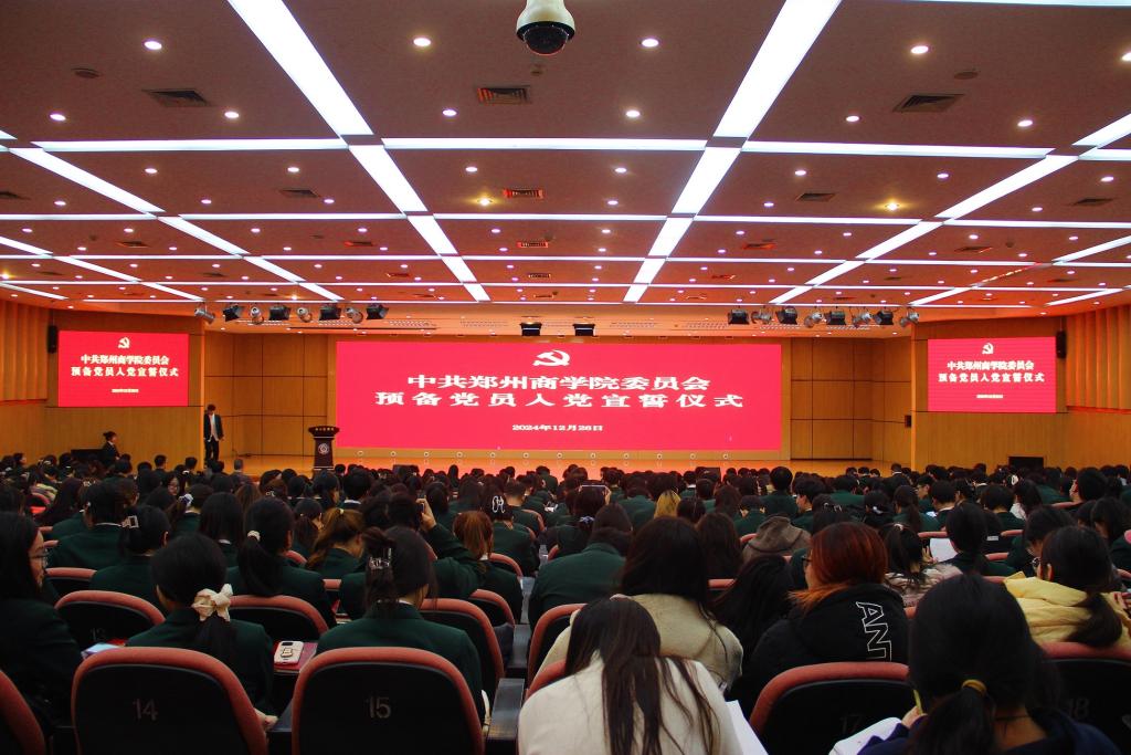 12月26日,校党委在图书馆一楼国际报告厅举行了预备党员入党宣誓仪式。党委书记吴建军出席会议并讲话,党委副书记兼纪委书记裴晓涛、党办主任兼组织部部长邢坤、宣传部部长程文质、学工部部长路程、各分党委书记、党支部书记以及2024年下半年新接收的446名预备党员、教职工代表参加会议。会议由党办主任兼组织部部长邢坤主持。
