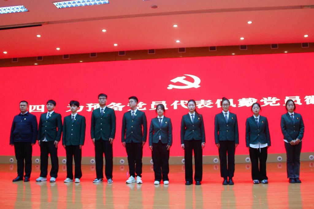 党委副书记兼纪委书记裴晓涛为预备党员代表佩戴党员徽章