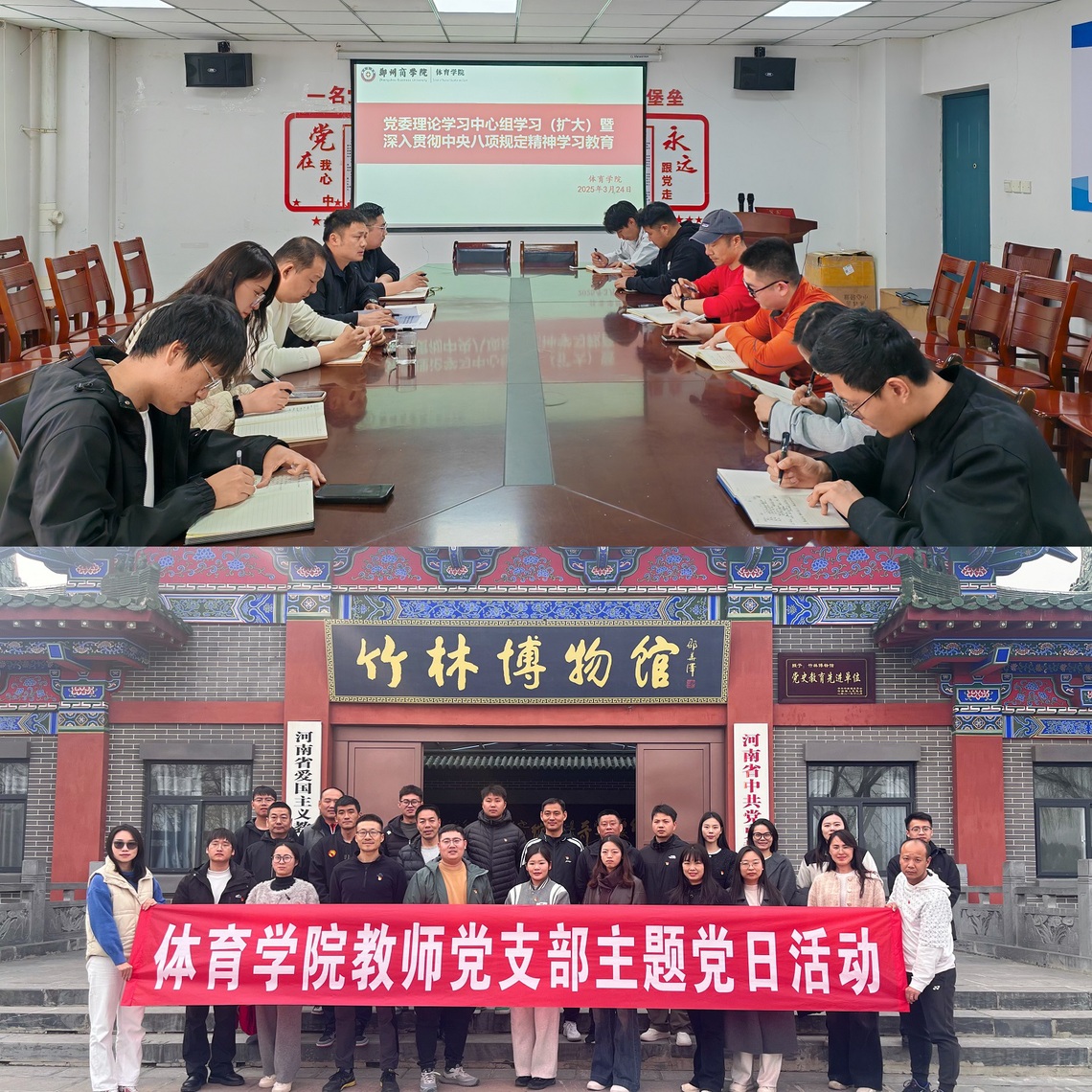 体育学院党委高度重视思想建设,定期组织党员开展政治理论学习。通过三会一课、主题党日等活动,引导教师党员坚定理想信念,牢记育人使命,将党建工作与教育教学深度融合。开展“教师党员讲党课”活动,教师党员结合体育教学实际,分享如何在课堂中融入思政元素,培养学生的爱国主义精神、拼搏精神和团队合作意识,实现体育课程思政育人目标。同时,体育学院严格落实师德师风第一标准,常态化开展师德警示教育,选树师德师风典型,引导教师争做新时代的“大先生”。