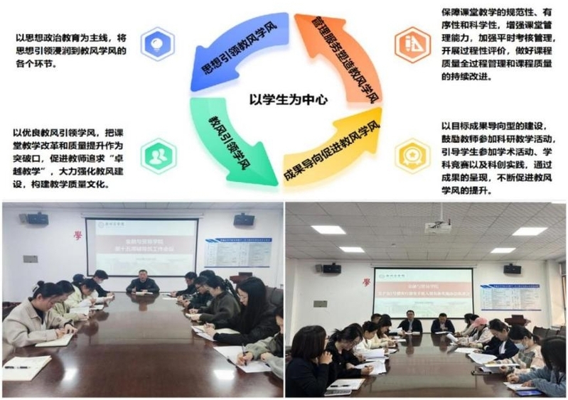 学院将教风学风建设深度融入党建工作体系,在党建计划中设专项任务,借助党委会、党政联席会明确“党建引领教风学风”的目标,达成“党建与教风学风互促”共识。运用“思想引领—组织推动—品牌塑造—制度保障—文化涵育”五位一体模式,把党建优势转化为建设动力。秉持“三全育人”理念,坚持立德树人,突出党建在学生发展中的核心地位,推动二者同频共振。同时积极构建“一心四维”体系,始终以学生为中心,从思想引领、课堂优化、管理革新、成果转化四个维度精准发力,全力营造师生积极互动的良好氛围,为师生的共同成长与进步赋能助力。