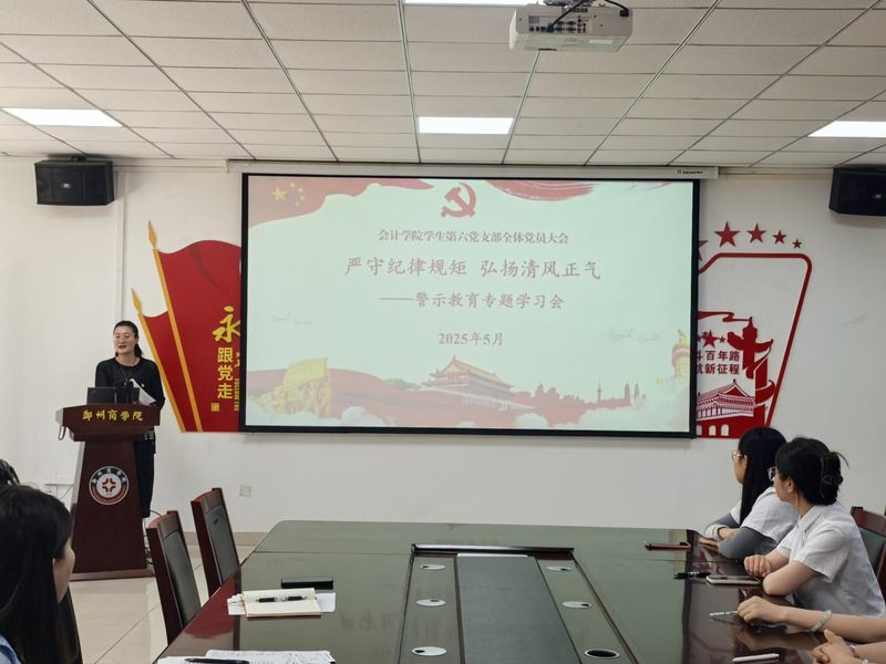 会计学院党委高度重视警示教育工作,将其作为深化全面从严治党的重要抓手。以每周工作例会为契机,党委书记带头领学教育领域违反中央八项规定精神典型案例摘编,围绕教育系统查处的党员干部违纪违法、违反中央八项规定精神等典型案例,紧扣党的政治纪律、组织纪律、廉洁纪律、群众纪律、工作纪律、生活纪律进行深入剖析,引导教师党员深刻汲取教训,做到警钟长鸣。同时,组织观看《零容忍》《永远吹冲锋号》等警示教育片,通过真实案例的震撼呈现,引导教师党员从违纪违法案例中汲取深刻教训,进一步强化党性教育,加强党性锻炼,增强党性修养,自觉筑牢拒腐防变思想防线,推动纪律意识入脑入心。