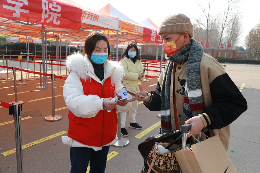 因为疫情影响,我院提前落实疫情防控部署。返校前,督促同学们坚持连续14天钉钉健康打卡并收集健康码、行程码、48小时内核酸检测阴性证明及郑好办报备截图。返校时,核查个人信息,并对同学们的行李进行消杀。
