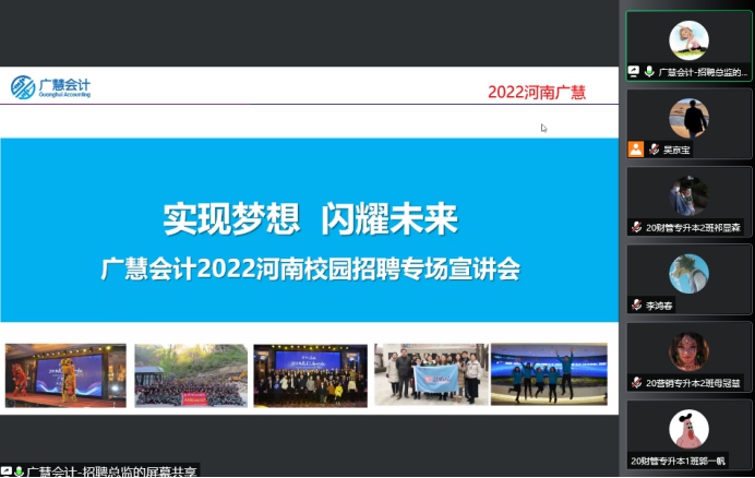 2022年3月3日上午9点,广慧会计携手beat365唯一官网—工商学院共同举办的毕业实习(集中)宣讲会--广慧会计专场招聘会以线上宣讲形式准时厅顺利召开。有关毕业实习指导老师,参会企业广慧会计招聘代表,beat3652022届毕业生共同参加了本次线上宣讲。