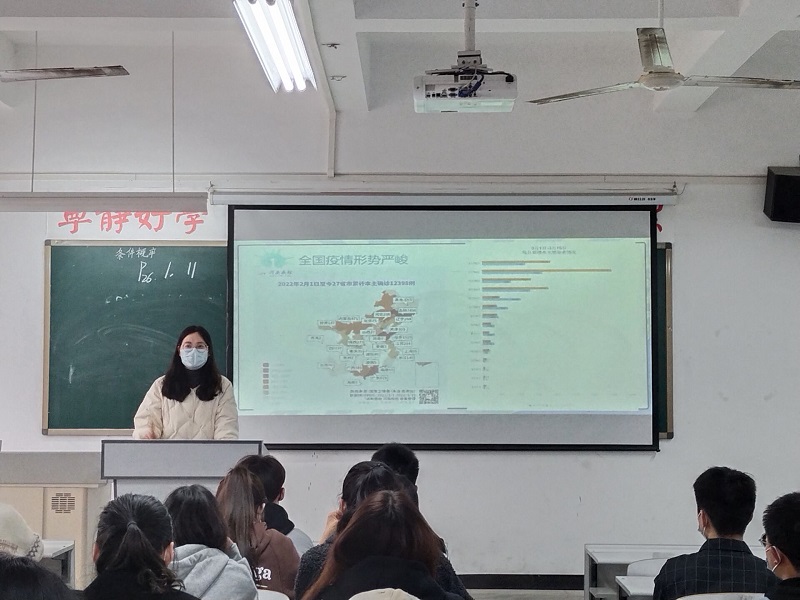 精密织网,精准防控。疫情防控的关键时刻,我院全体辅导员老师以“严之又严”的严要求、“细之又细”的细工作、“精之又精”的精防控,全力以赴地做好学院疫情防控工作。召开疫情防控班会,辅导员们向学生传达了当前疫情防控形势的严峻性和复杂性以及学校疫情防控工作的各项要求,强调了防疫的重要性,增强学生的责任意识和防护意识,并提醒同学们要严格做好日常疫情防控工作。科学佩戴口罩,关注自身健康状况,做好寝室教室的消毒通风工作,非特殊情况不得出校。牢记常态化疫情防控下的安全防范知识与注意事项,做好长期防护准备。