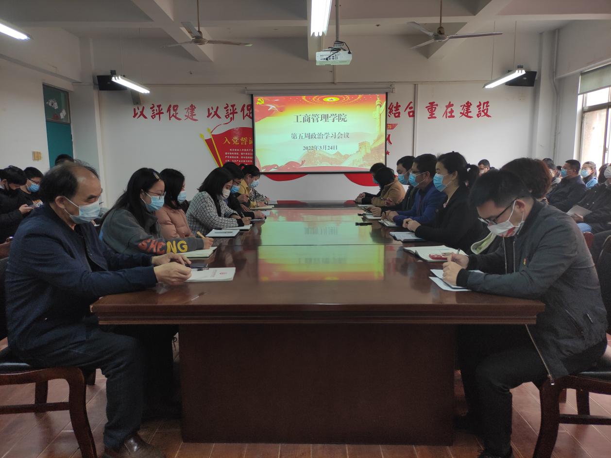 3月24日,我院严格按照疫情防控要求在2号楼二楼会议室召开2021-2022学年第二学期第五周政治学习。院长杨松柏、党委书记宋森、副院长张卫丽及全体教职工参加会议。