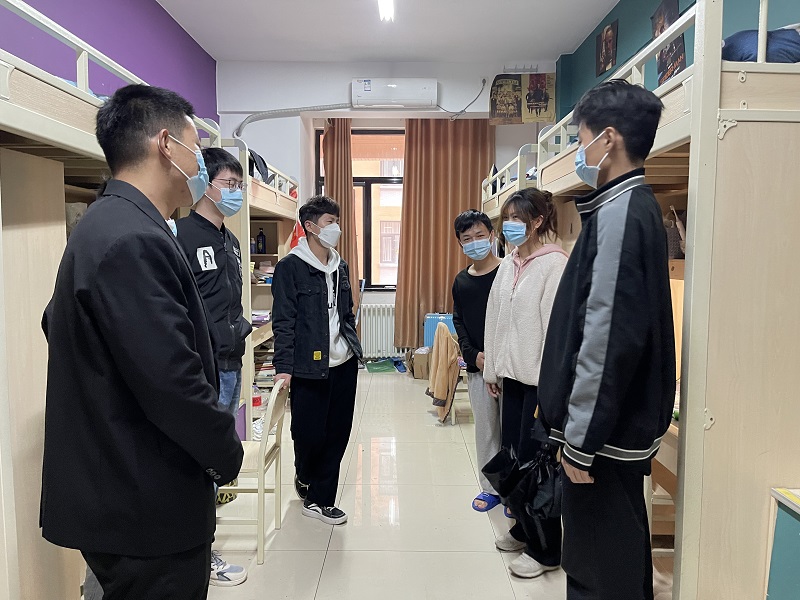 为持续推进疫情防控常态化学生管理工作,深入落实“六化一家园”建设,维护校园安全和宿舍稳定和谐,3月29日晚,工商学院党委书记宋森、团委书记董文浩、生辅科科长朱宏东、生辅科宁震海老师以及辅导员代表巡视校园、宿舍及围墙等地,工商学院全体辅导员深入学生宿舍。