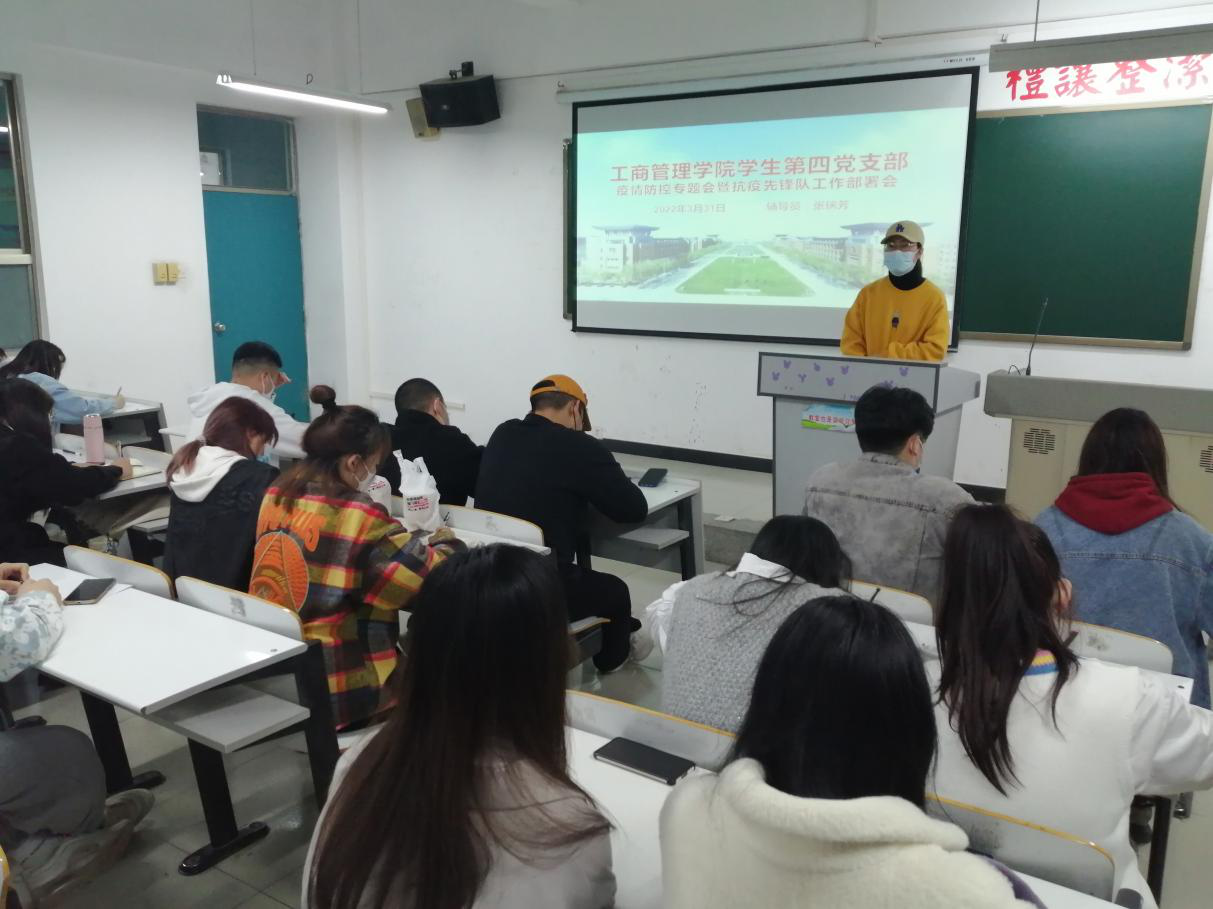 为学习贯彻全省教育系统疫情防控工作会议精神,落实学校疫情防控工作要求,2022年3月31日下午20点,我院在2306召开学生第四党支部疫情防控专题会暨抗疫先锋队工作部署会。工商学院学生第四党支部全体党员、积极分子参加会议。