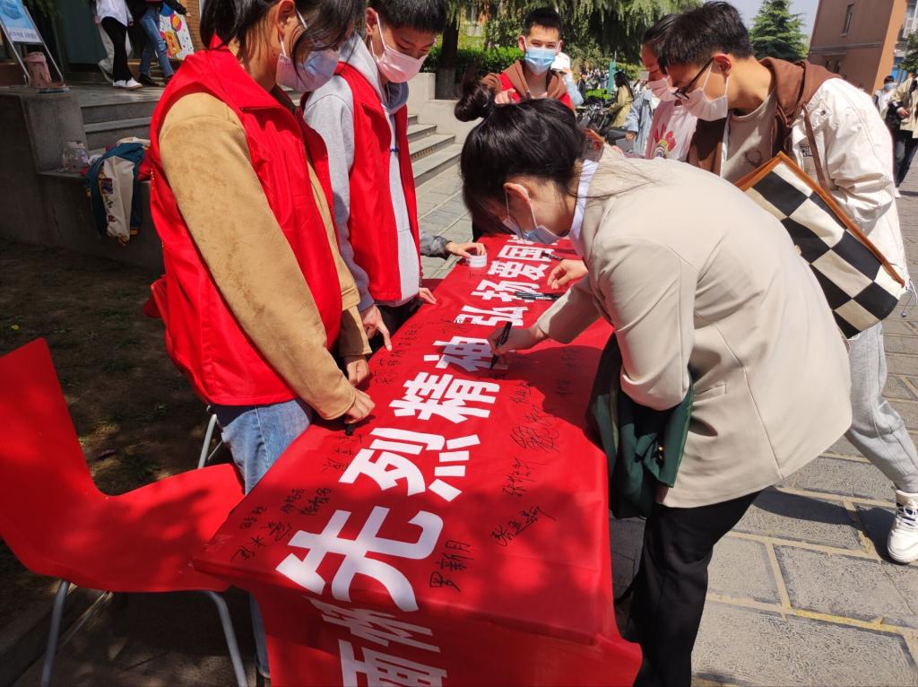 清明节是人民群众追思亲人、寄托哀思、慎终追远、敦亲睦族的传统节日。为了在清明时节怀念逝者,祭祀祖先,缅怀烈士,4月5日,我院在2号楼门口举办“缅怀先烈精神 弘扬爱国情怀”签字寄语活动。师生们纷纷在条幅上签下自己名字,寄托自己的哀思。