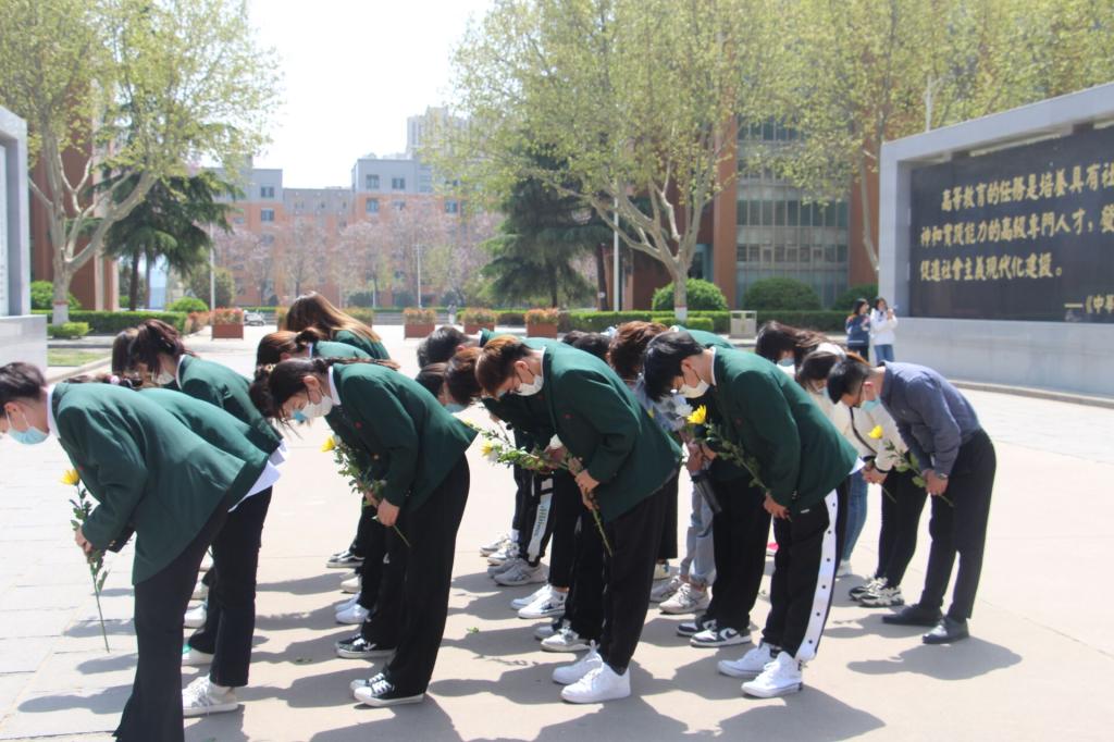 孟瑶带领大家回顾了创办人的一生,大家为先生倾尽毕生心血投身教育事业的精神而深深感动。接着,全体人员手捧花束,心中怀着对创办人的无限思念和感恩,肃穆默哀,并鞠躬致礼并献上花束,以此表达对先生的感恩与追思。最后,大家到建校纪念碑前,再次深入学习了解建校历史,重温了创办人的办学理念。