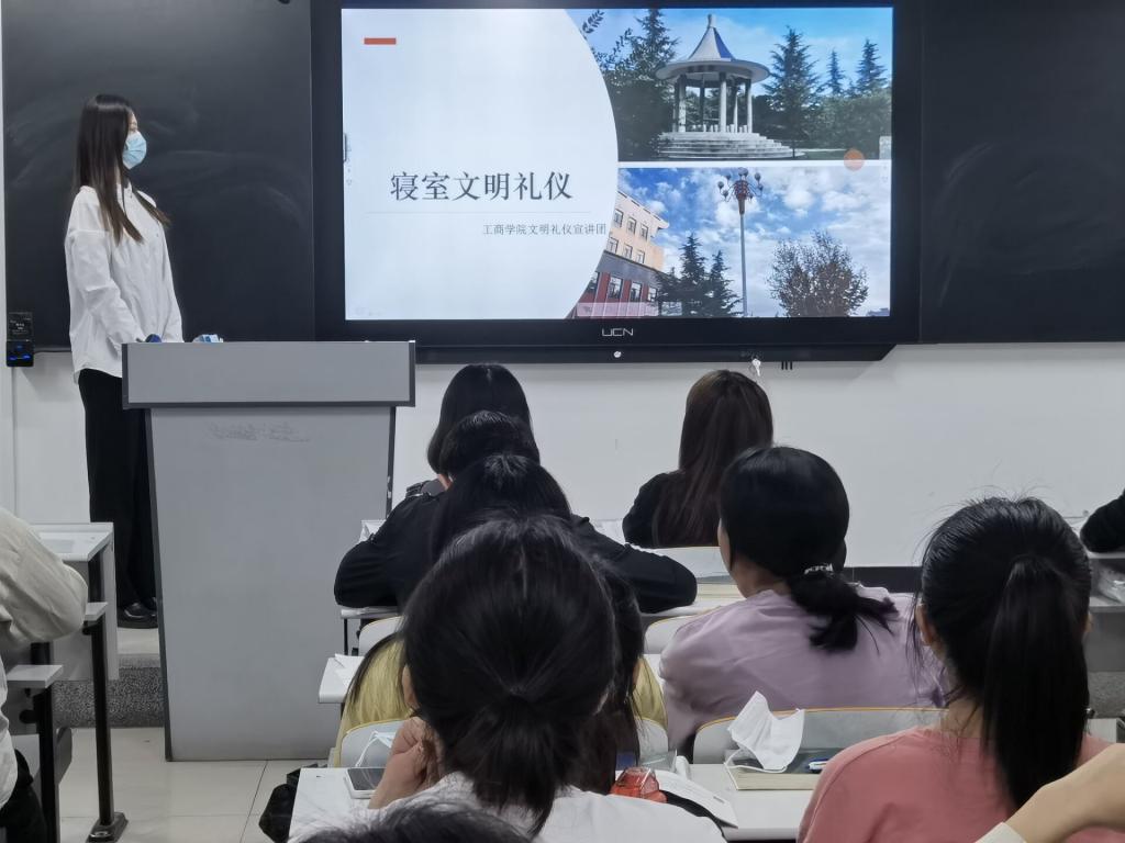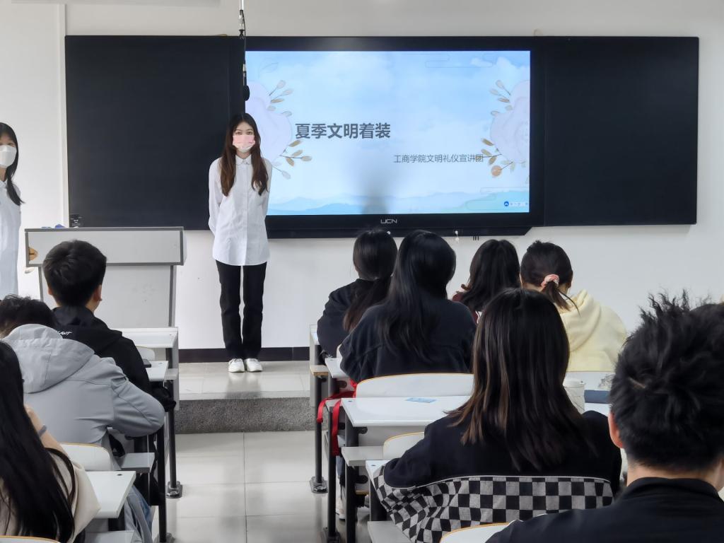 本次文明礼仪教育宣讲的内容包括:宿舍文明礼仪、夏季文明着装礼仪、男女文明交往礼仪。具体活动为工商学院艺术团礼仪宣讲团在各个班级进行校园文明礼仪宣讲,让学生们进一步了解校园文明礼仪知识。