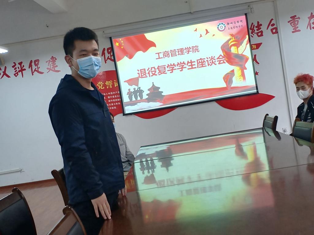 为进一步贯彻落实党的十九大关于“维护军人军属合法权益,让军人成为全社会尊崇的职业”的精神,积极落实退役军人相关优待政策,建立健全退役复学学生帮扶机制,我院于4月16日晚在2号教学楼2206会议室召开工商学院2022年退役复学学生座谈会,我院征兵工作负责人张金凤老师和退役复学学生代表参加了此次座谈会。