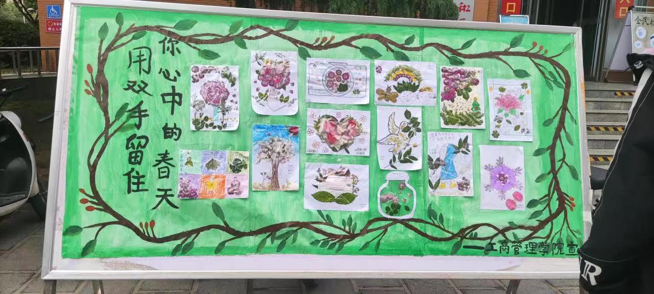本次活动面向全体在校生征集手工艺品,活动开展以来,同学们积极参与,参与活动的同学在A4纸上画出或剪出喜欢的图案,将植物贴进作品里边,并进行图案设计,同学们纷纷将自己在业余时间精心制作的手工作品展示出来,本次活动创意新颖,色彩鲜艳,吸引了众多老师同学前来参观。最后由辅导员代表进行评选,获奖作品将放置于2号楼门口进行展示。