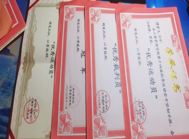 三月份举办了运动会,经过一天激烈角逐后,拿到很多冠军。荣誉的取得从来都不是幸运和偶然,这份沉甸甸的荣誉凝结着汗水,手捧证书的那一刻。所有的劳累,汗水,紧张都消失的无影无踪。因为通过努力取得进入大学生活以来的个人奖项那份心情不是用言语可以表达的,就像初次尝到蜜糖一样那么的甜
