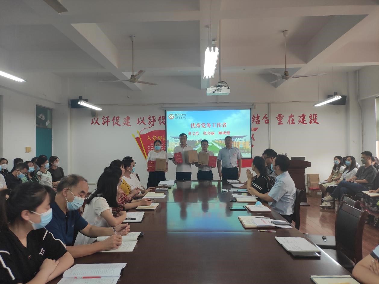 会上,宋书记宣读了《中共beat365唯一官网工商管理学院委员会关于任命党委委员及党支部书记的决定》,并对2021—2022学年“七一”评选、“三育人”先进个人进行了表彰。宋书记代表学院党委向获得表彰的同仁表示祝贺,也希望受表彰的同仁戒骄戒躁、接续奋斗。
