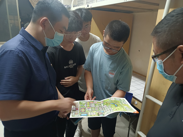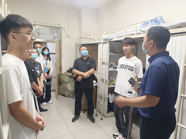 傍晚,我院院长杨松柏、党委书记宋森、副院长张卫丽、团委书记董文浩及全体本专科新生辅导员深入学生宿舍,叮嘱同学们在静默期间,注意开窗通风、做好个人防护,特别注意防电信诈骗。此次深入宿舍准确摸排了新生返校情况,同时增进了学生与老师间的沟通交流,真正做到以学生为中心,从而成为学生成长成才的人生导师和健康生活的知心朋友。