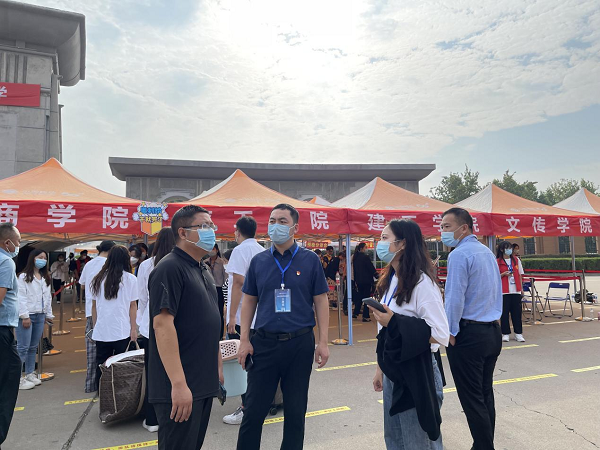早晨,我院院长杨松柏、党委书记宋森一行来到迎新现场,走访我院新生报到处,看望前来报到的同学,慰问奋战在迎新一线的师生员工。同时也强调应时刻加强疫情防控工作,保障新生顺利平安返校。