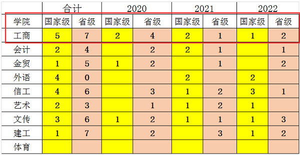 大学生创新创业训练计划(简称大创项目),是本科教学审核评估的重要指标之一,是开展专业评估和认证的核心指标。为推动我院创业实践教学改革,激发师生创新创业工作热情,使创新创业教育再上新台阶,近三年来,工商学院领导高度重视,积极宣传、精心组织、认真筹备,同学们刻苦钻研,不断打磨作品,指导教师们充分发挥科研创新精神,认真指导。在师生的共同努力下,工商学院在此项目中也取得了较好的成绩。