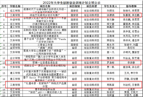 近日,2022年大学生创新创业训练项目立项结果新鲜出炉,我院申报的3个项目全部立项,其中国家级1项,省级2项。