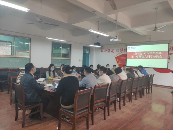 9月27日下午,工商学院在2号楼二楼会议室召开第六周学务例会。工商学院党委书记宋森、团委书记魏瑶及全体辅导员参加会议。