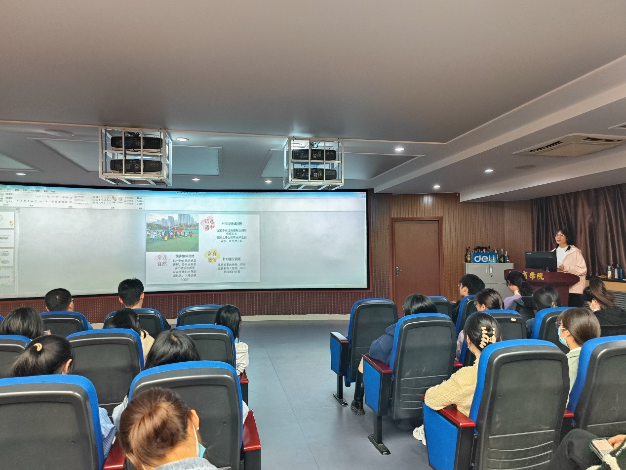 最后是上届导游大赛参赛选手辛佳露同学进行的经验分享。辛佳露同学以自己的比赛经历,鼓励大家好好准备本次导游大赛,并且为大家带来了详细的备赛指南。此次培训是旅游协会为助力第五届导游模拟大赛特别举办的活动,以便帮助参赛的同学们有针对性地做好赛前准备,取得理想成绩,活动彰显了旅游协会比赛培训的职责,帮助参赛同学做好赛前准备,在不久大赛中以更新、更强、更有活力的姿态,赛出风格,赛出自我,赛出精彩,取得理想成绩!