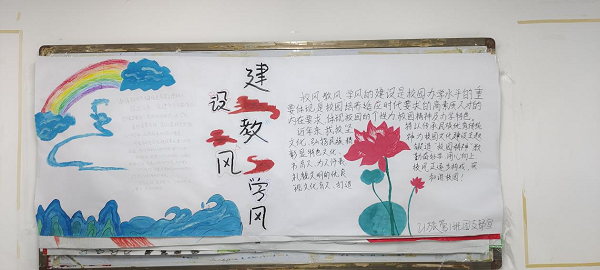 为使同学们在良好的学习氛围中提高自身修养,增强竞争意识,形成创优争先的整体风尚,树立正确的学习态度,我院开展制作学风建设主题板报活动。同学们都展示出了自己丰富的想象设计能力和绘画能力,在全院掀起了班风学风建设的高潮。