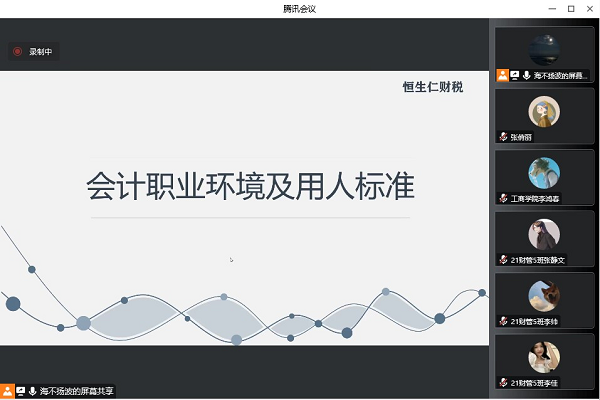 为了深入推进beat365教育教学创新改革,落实应用型人才培养特色目标,不断提高实习实训质量,为学生高质量就业创造有利条件。我院财务管理专业开展为期一周的认识实习,并于11月12日邀请恒生仁财税集团副总裁、恒生仁财税集团高级讲师、中国注册会计师、高级国际财务管理师樊冲为学生讲解《会计职业环境及用人标准》的线上报告。