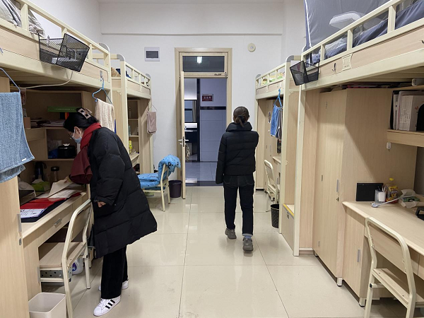 深入期间,辅导员与宿管员及时沟通交流,对于出现的问题及时解决,对于安全隐患提前防范。随后,辅导员老师们进入学生宿舍内部重点排查宿舍门窗、墙皮、暖气和违规电器等情况。