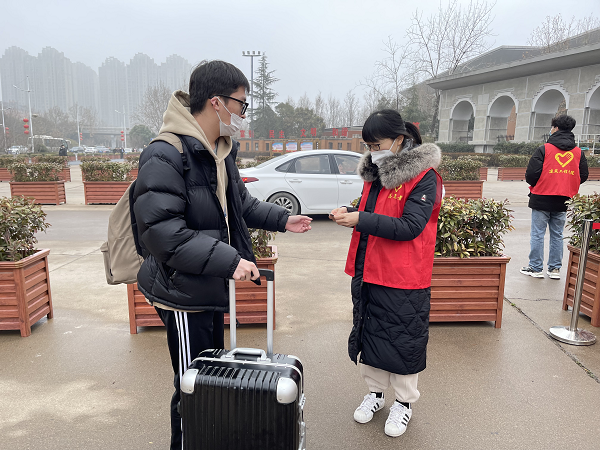 2月11日,我院院长杨松柏、党委书记宋森、副院长张卫丽深入返校现场慰问返校学生和工作人员。学生报到现场秩序井然,同学们出示学生证或者一卡通,通过测温帐篷,按照顺序依次进行。返校现场,辅导员老师和身穿红马甲的志愿者们不停忙碌,为返校工作顺利进行贡献出了自己的一份力量。我院组织志愿者,分工明确,在校门口、摆渡车停放处和宿舍楼下指引车辆,帮助同学,现场的工作人员认真负责。在此次春季开学工作中,我院全体师生密切配合,认真负责,真正做到了安全高效、有条不紊、井然有序。