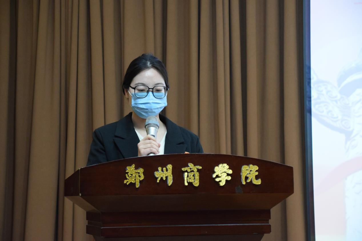 最后,仪式进行第四项,由预备党员代表晁倩倩发言。晁倩倩同学表明作为一名中共预备党员首先要提升自己的政治素养,树立正确的三观;其次,要坚持全心全意为人民服务的宗旨,充分发挥预备党员的榜样引领作用;最后,要有咬定青山不放松的精神,铭记此刻,不忘党恩,不忘初心。