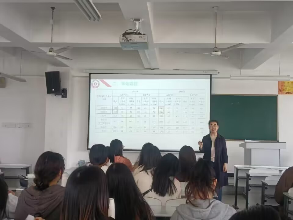 本次会议从四个方面来展开:专业分类、学硕选择、专硕选择和关于考研的几点建议。张卫丽副院长列举了关于学硕、专硕的专业分类,并详细介绍不同专业对应的考试科目,此外通过近两年国家线对比升降图展示出了不同专业分数的趋势,使我们对专业的选择更加目标清晰。会议中副院长强调要客观定位并勇于挑战,不要怕吃苦,辛苦一年,幸福一辈子。