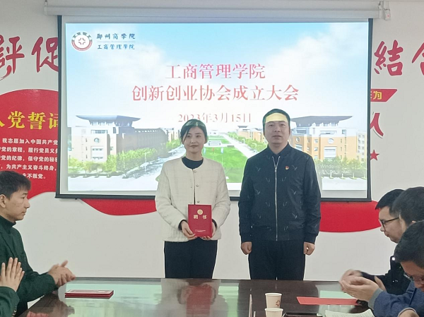 会上,张老师为协会各部门负责人颁发聘书,宋书记为协会指导教师颁发聘书。随后,协会负责人崔鹏鹏同学发言,他表示今后将提升服务意识,做创新创业教育的服务者。通过创协联络广大同学,营造良好的创新创业氛围。同时,提升创新意识,做创新创业教育的实践者。精心组织,丰富创新创业活动形式,提升同学的创业意识、培养创新能力。