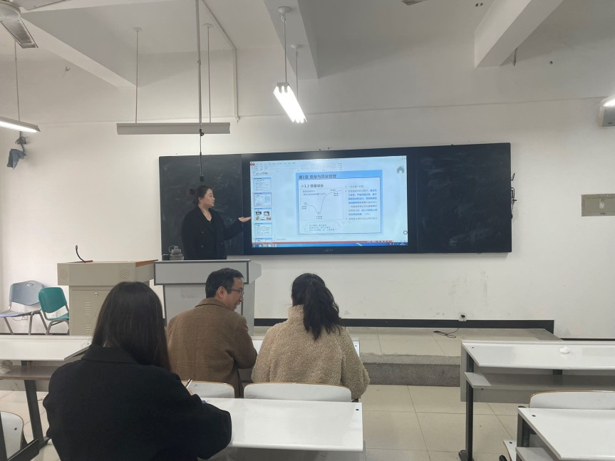 点评过程中,苗瑞洲老师首先对两位青年教师表示了肯定与鼓励,看到了两位教师在过去半学期工作中的成长。其次,也指出了一些授课中存在的共性问题,比如语言表达方面可以更加简洁清晰、在案例的选取上可以更加贴近学生生活等。最后,苗老师将自己讲授《质量管理学》的经验分享给两位青年教师。张倩丽老师针对汇报课的内容也发表了自己的一些看法,指出了两位青年教师在教学设计、课件制作上存在一些不足之处,并给出了一些中肯的建议。两位青年教师在点评过程中也虚心听取两位前辈给出的经验和建议,同时针对自身在教学过程中遇到的问题和两位前辈进行了交流和分析。