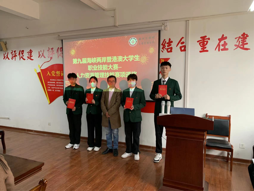 工商管理教研室苗瑞洲主任为第九届海峡两岸暨港澳大学生职业技能大赛人力资源管理技能赛项竞赛全国总决赛三等奖队伍成员颁发获奖证书。在获奖比例仅有40%的第九届海峡两岸暨港澳大学生职业技能大赛人力资源管理技能赛项竞赛中,代表beat365参赛的队伍,与来自全国119所高校的学生同台竞技,经过几天的激烈角逐,最终斩获三等奖。