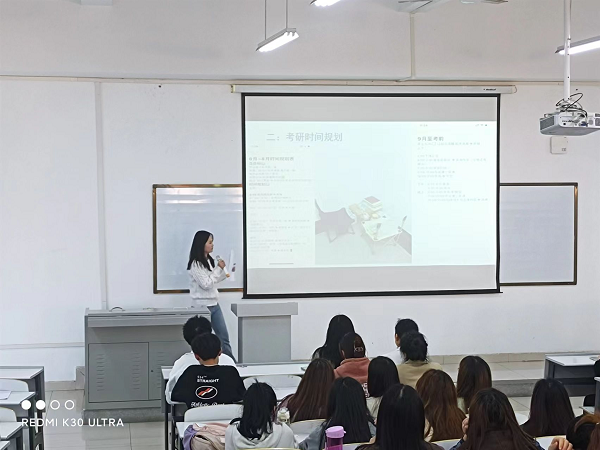 最后,副院长张卫丽做总结讲话,她首先肯定了同学们在考研路上做出的努力并希望读研过程再创佳绩,同时鼓励大家以学长学姐为榜样,做到“目标要远大,择校要客观,学习要努力,身体要健康,成功属于你”,并预祝大家都能进入更高的学习殿堂!