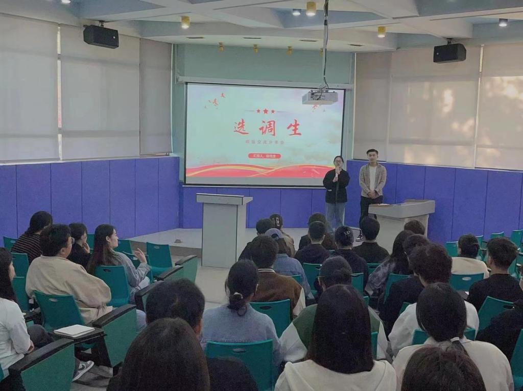 为帮助同学们尽早做好职业规划,加强我院21级同学对选调生政策、备考流程和工作内容的了解,鼓励同学们到基层施展才干、建功立业,4月27日晚,我院在2116教室举办选调生经验分享会。本次分享会邀请了优秀毕业生陈佳龙同志(现任巴里坤县石人子乡韩家庄子村党支部副书记)作为嘉宾进行经验分享。我院团委书记魏瑶,辅导员梁瑞静、张勤英、刘明慧以及21级同学代表共同参加经验分享会。
