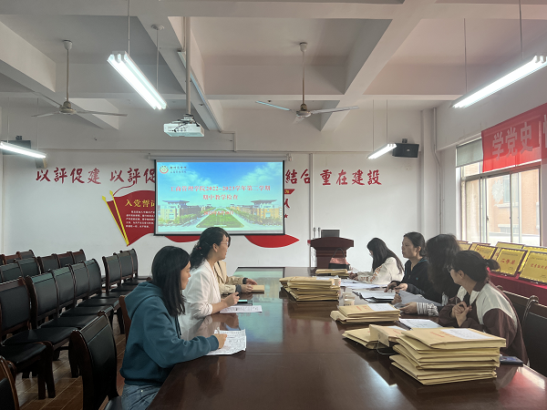 随后,课务科科长周培娟带领三名检查组老师围绕我院专兼职教师常规教学资料进行细致的检查,包括教案、讲稿、课件、教学大纲、教学进度表、教学小结。查阅过程中,检查组老师对我院教学资料给予了积极地评价,同时也反馈了个别教学资料中存在的问题,并要求相关老师及时整改,严格做好日常教学资料的规范性工作。