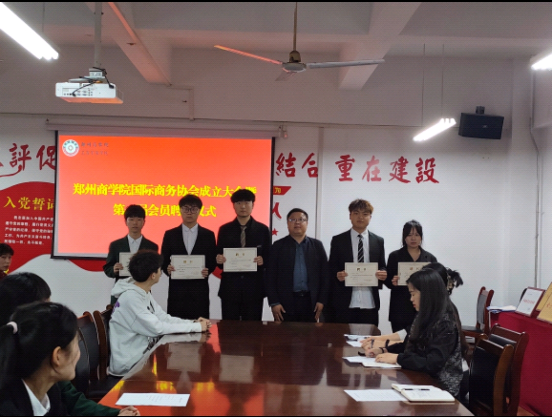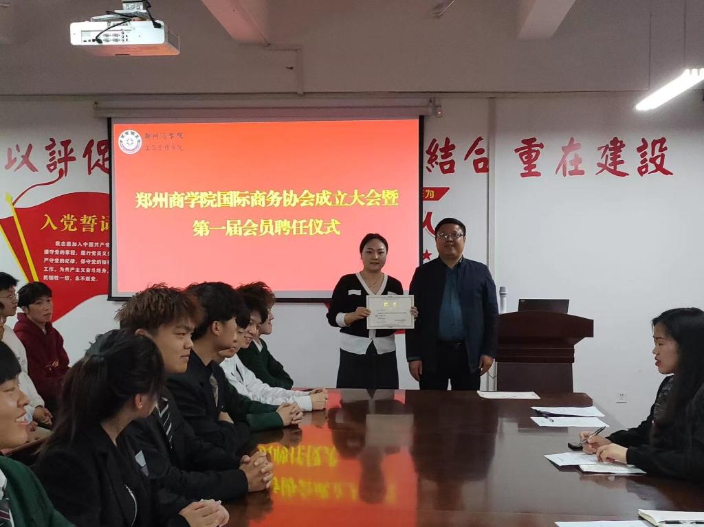 随后,杨院长、刘主任对国际商务协会指导老师和协会干部代表颁发任职聘书。