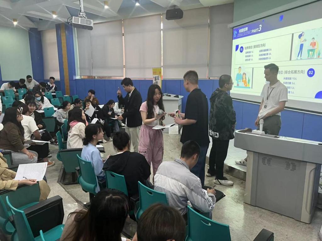 会后,有意向的同学积极提问,刘宝校友针对学生问题进行答疑,现场氛围热烈,并组织了现场招聘环节。